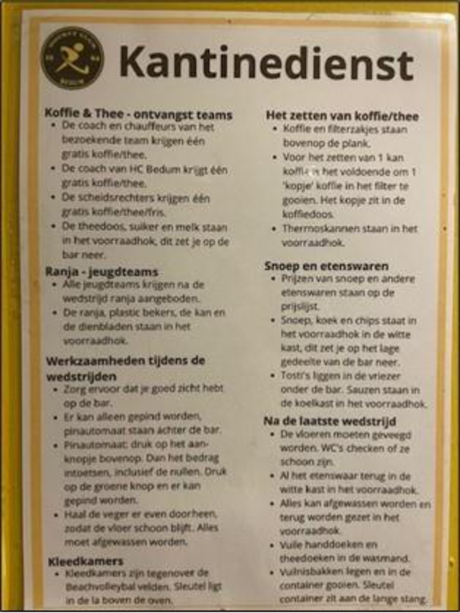 Even een reminder van het kantinedienst regelement als je kantinedienst hebt.