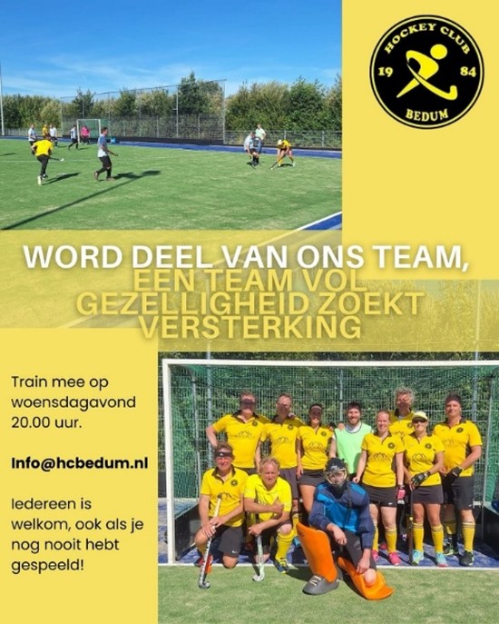 🏑 Nieuwe teamleden gezocht bij HC Bedum H30-1, onze enthousiaste Veteranenteam!